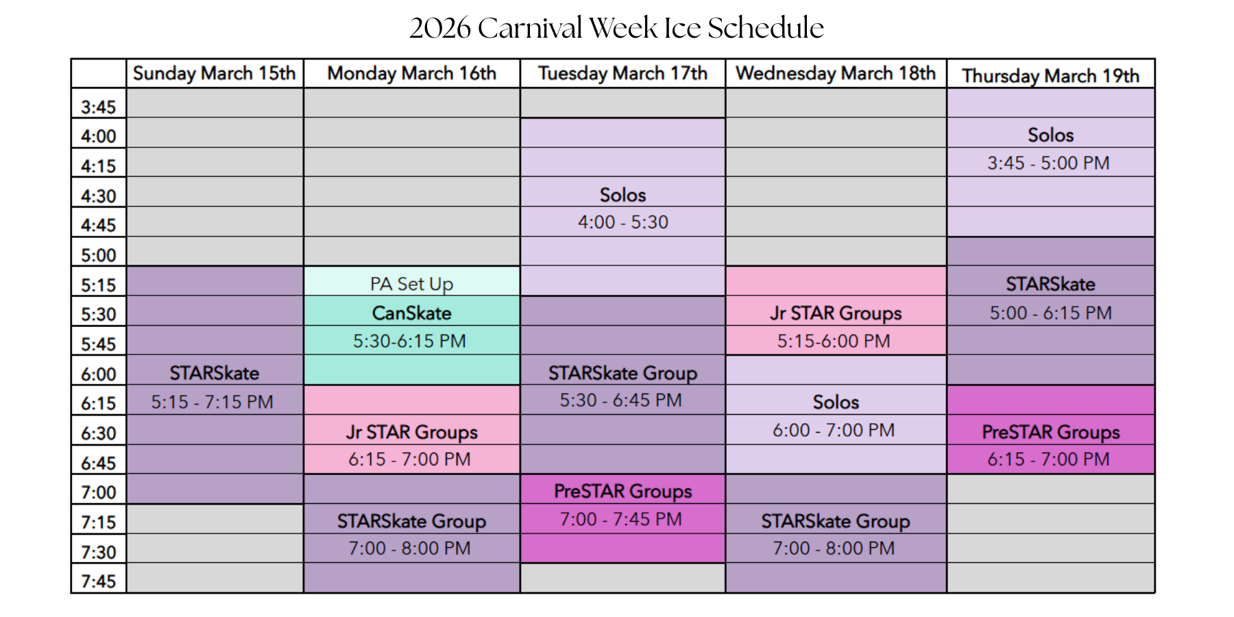 This will run April 2 - April 23 (7 Sessions) and is available for all our STAR program skaters (PreStar, Jr Star and StarSkate)